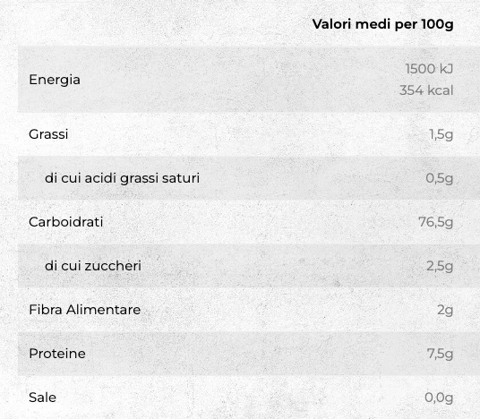 The smell and taste of Glutenfree Granoro are typical of corn, attenuated by the rice flour component and the vegetal note of quinoa. We chose to include quinoa in the mix to rebalance the supply of fiber, mineral salts and proteins, since rice and corn lack them. The mix of the three flours gives the product a yellow color very similar to durum wheat pasta, tenacious after cooking and the roughness of the surface allows it to bind the condiments well.